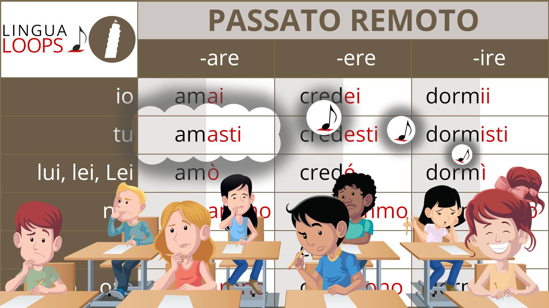 - Seven loops covering the main conjugations for all three regular verb types, -are, -ere,