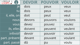 • A loop for the present tense of the three modal verbs, devoir, pouvoir, and vouloir