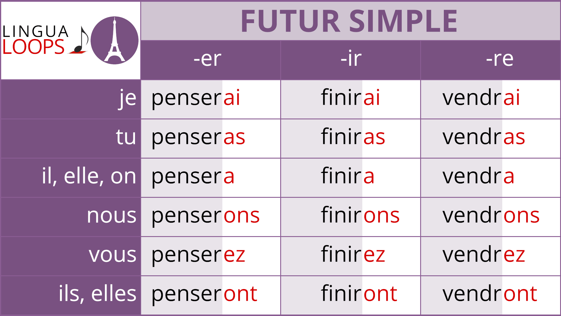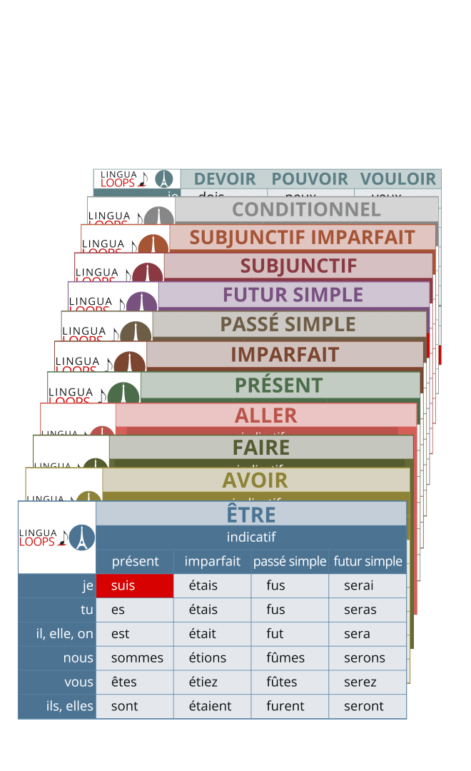 • Seven loops covering the main conjugations for all three regular verb types, -er, -ir, and -re